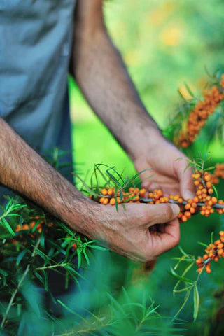 Høstet driver en økologisk havtornplantage med mere end 3500 buske der giver de flotte og smagsfulde bær. Havtorn er et særligt bær med en kraftig skal, en smule frugtkød og en hård kerne som tilsammen giver en sund råvare med en unik smag