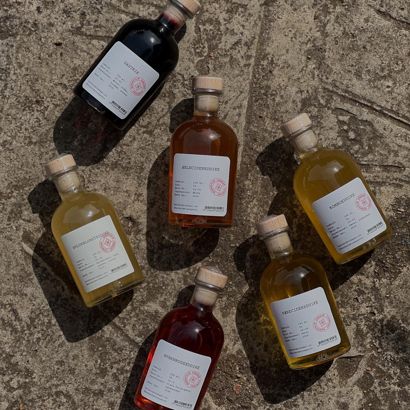 Bornholm Vinegar Company står bag en helt særlig gourmeteddike. Eddiken produceres af vinrester og tilsættes lokale smagsgivere i form af æble, pære, hybenrose, blomme, slåen og meget mere.