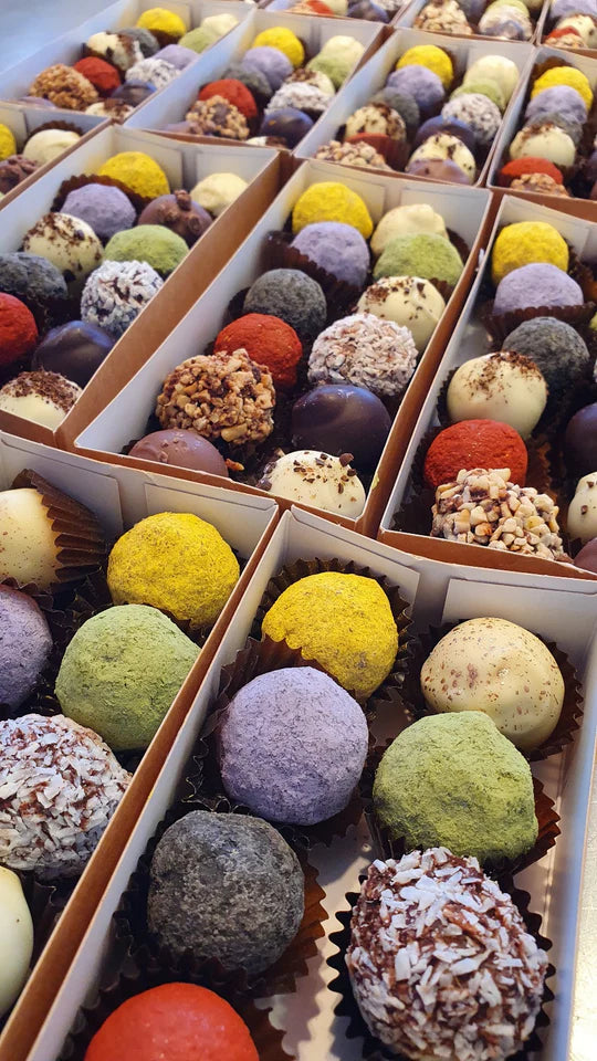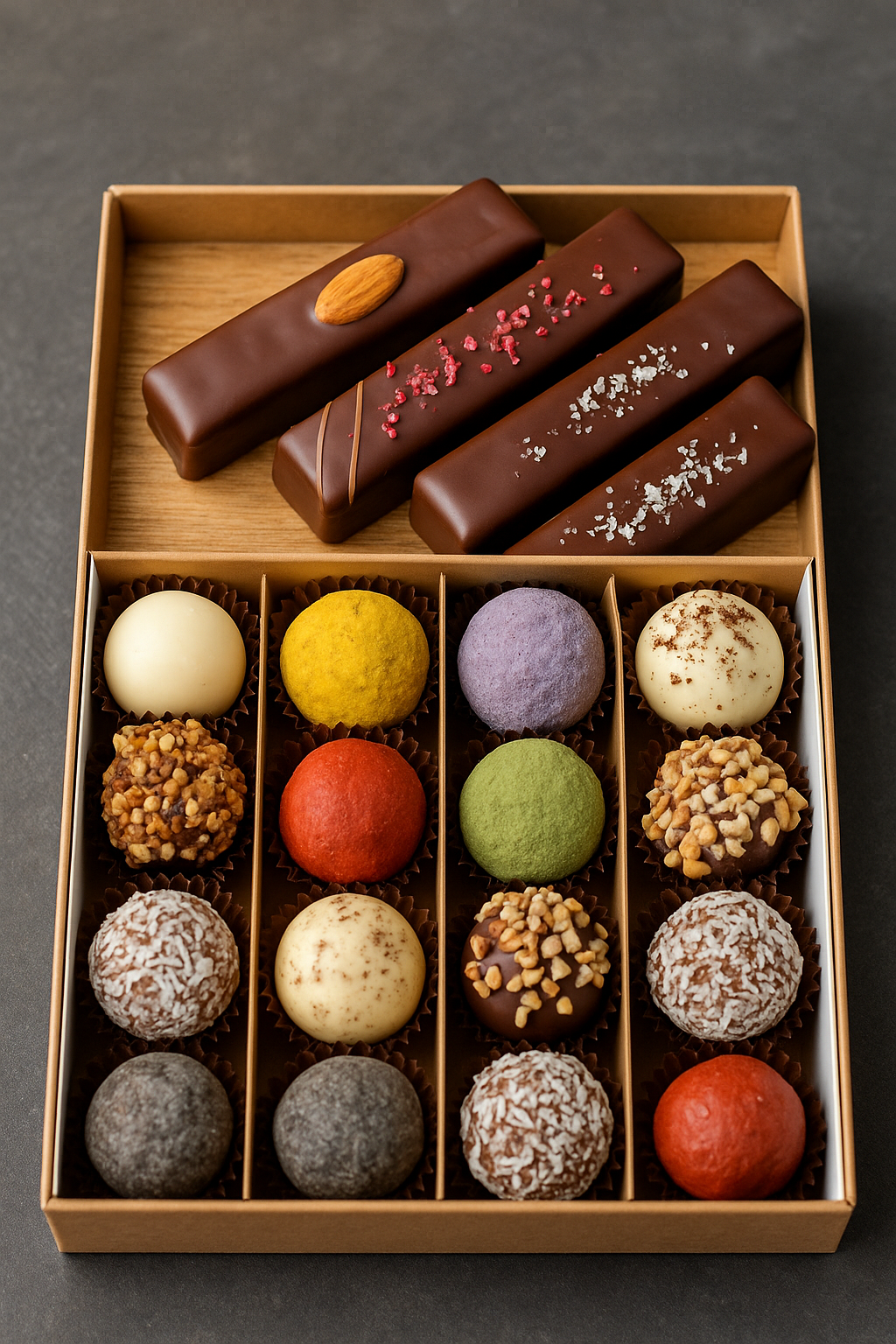 Svaneke Chokoladeri har blandet denne æske som består af 12 fyldte stykker og 4 af deres populære stænger. Æsken er til dig der elsker rigtig god chokolade og at gå på jagt i en blandet æske efter lækkerier som marcipan, ganash, nougat osv.